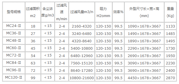 MC24-120Ⅱ型脈沖袋式除塵器技術(shù)性能: